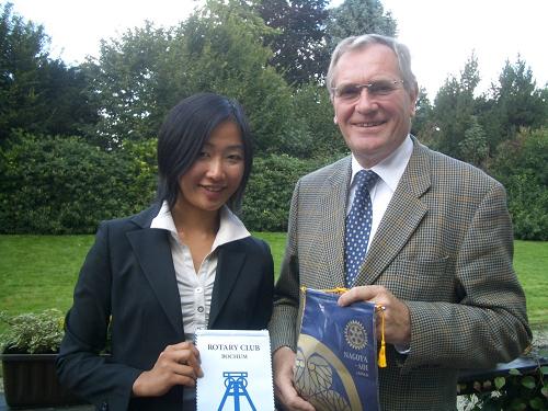 先ずは簡単にこの制度の説明をさせて頂きます。国際親善奨学金プログラムは他国の教育機関で勉強することにより、世界理解と平和の推進を図るものです。奨学生の浅野さんは一昨年当クラブに連絡が入り、ドイツ留学を希望された東京外語大学に通う3年生でした。3種類の奨学金のうち、今回はマルチイヤー奨学金を希望し、晴れて今年の10月よりドイツのボーフム大学へ入学しました。